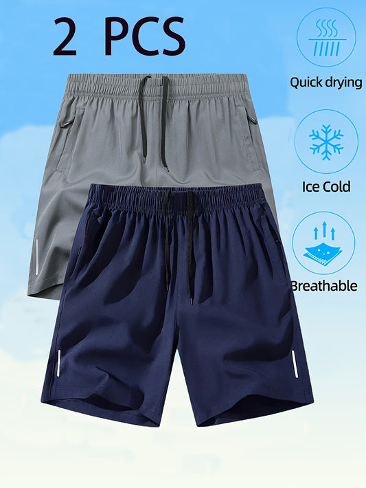 2 հատ Տղամարդկանց պատահական տպագրված պոլիեսթեր շորտեր՝ թեթև ձգվող, լուսավոր մանրամասներով և արագ չորացող աստառով