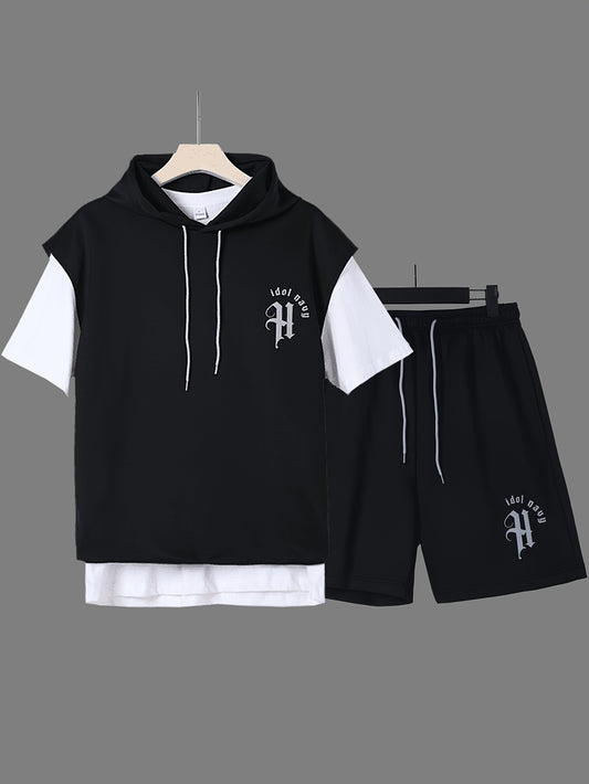 Տղամարդկանց առօրյա սպորտային հագուստի հավաքածու. Նոր ամառային նորաձև գլխարկով բաճկոն՝ երկու մասից բաղկացած հանդերձանք