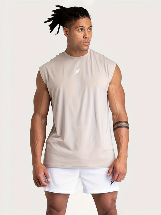 Տղամարդկանց բամբակյա խառնուրդ անթև տանկի վերնաշապիկ, պատահական պարանոցի սպորտային ժիլետ ամառային մարզասրահի մարզումների համար