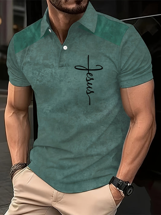 Տղամարդկանց Նորաձևություն Պատահական անհատականության կարճաթև մանյակ պոլո վերնաշապիկ, Vintage Splicing անգլերեն տառերով տպագիր, ամառային հագուստ
