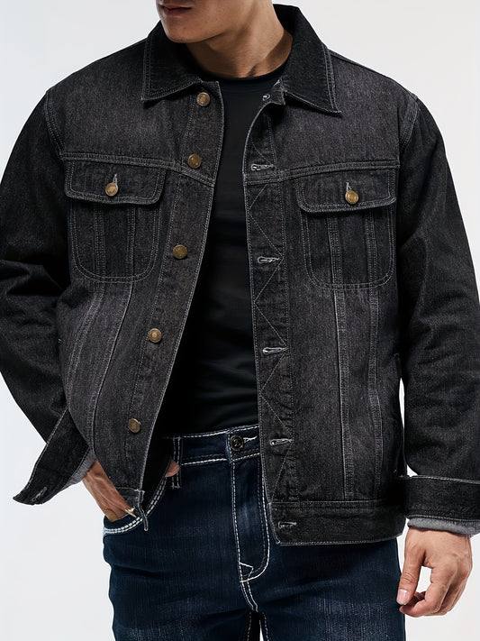 Տղամարդու նորաոճ ջինսե բաճկոն՝ սովորական երկարաթև գրպաններով, լվացվող մեքենայում