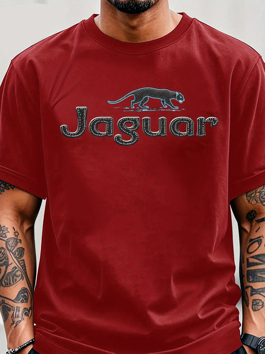 Տղամարդու Jaguar տպագրությամբ Y2K ոճի շապիկ - կարմիր, շնչող, հարմարավետ, կարճ թևքերով, կլոր վզնոցով շապիկ՝ ամենօրյա հագուստի, բացօթյա գործունեության և առօրյա հարմարավետության համար, Y2K նորաձև շապիկ՝ հարմարավետ չափսերով