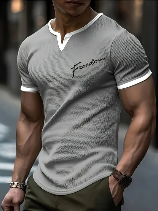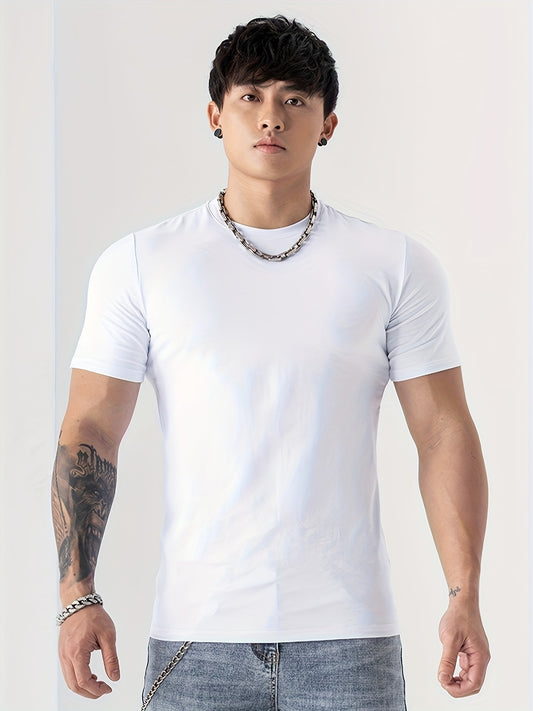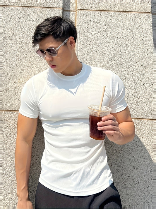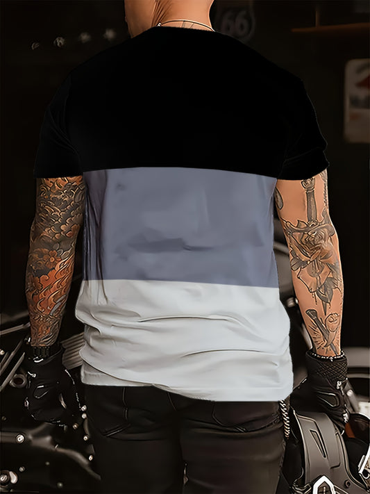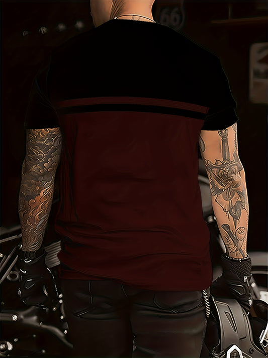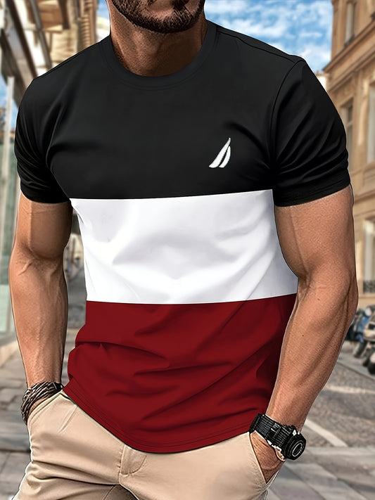 Men's Slim Fit Knit T-Shirt - Contrast Color Design, Breathable Stretch Fabric, Machine Washable Summer Casual Outdoor Sportswear for Men Teens, T-shirt Stylish, Versatile Top, Modern Fashion, Durable Construction, Short Sl