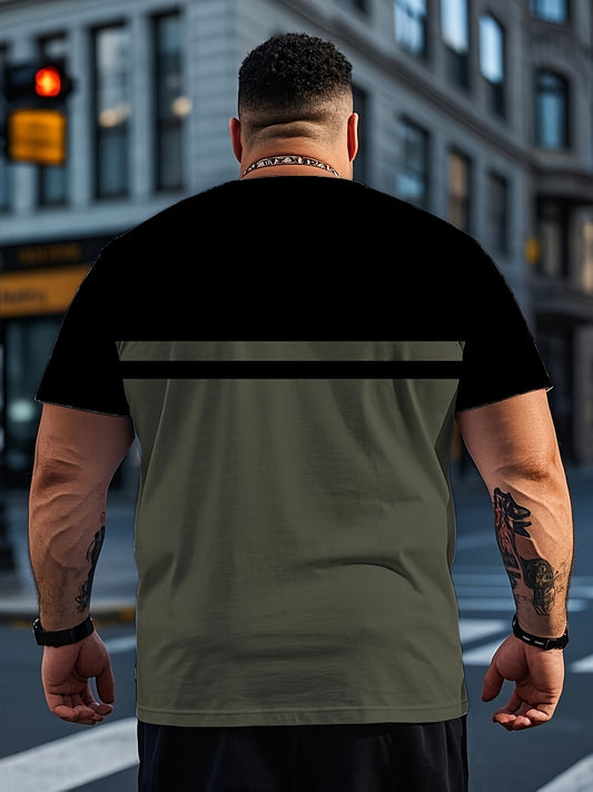 Տղամարդկանց մեծ չափսի ամենօրյա 3D տպիչով գծավոր մարզաշապիկ - թեթև պոլիեսթերի խառնուրդով, շնչող կարճ թևքերով, կլոր վզով մարզաշապիկ՝ բացօթյա արկածների համար, լվացվող լվացքի մեքենայով, մեծ չափսերով, բազմակողմանի արկածային հագուստ