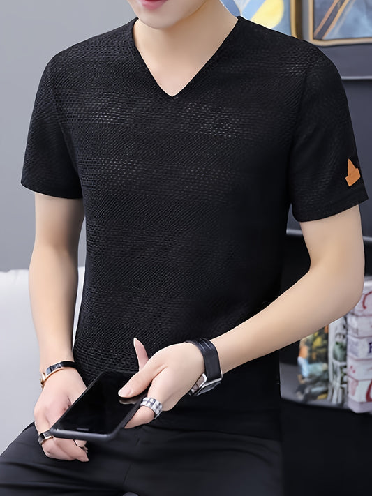 Տղամարդու կարճ թևքով V-ձև օձիքով շապիկ - թեթև, շնչող, առօրյա չափսերով, միագույն սև, իդեալական է ամռան համար, բարձրորակ տրիկոտաժե գործվածքով, առօրյա ոճով, հարմարավետ չափսերով