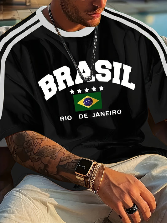 Տղամարդու կարճ թևքով, 3D թվային տպագրությամբ, կլոր վզնոցով, բրազիլական ոճի, պատրաստված թեթևակի ձգվող պոլիեսթերային տրիկոտաժե գործվածքից, հարմար է ամառային բացօթյա գործունեության և առօրյա կրելու համար։