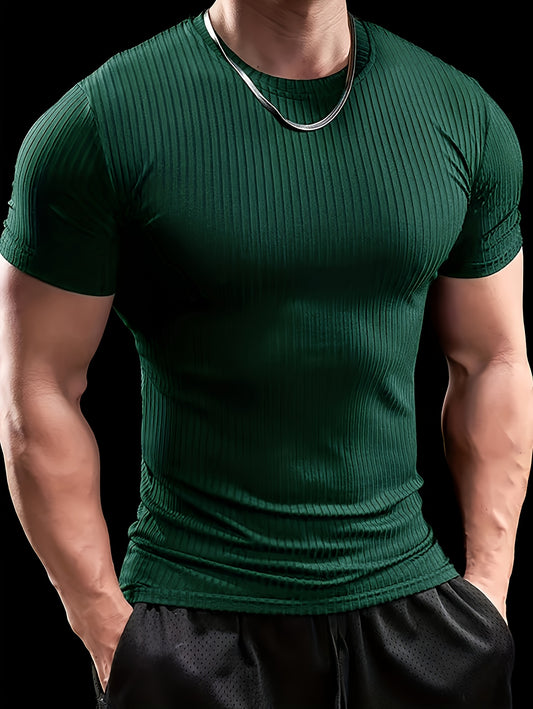 Տղամարդու նեղ, կարճ թևքերով, կողավոր մարզաշապիկ - առաձգական, սպորտային, առօրյա հագուստի համար, կանաչ, կլոր վզնոցով, լվացվող մեքենայով, մկանները խթանող դիզայնով, մարզասրահի վերնաշապիկներ