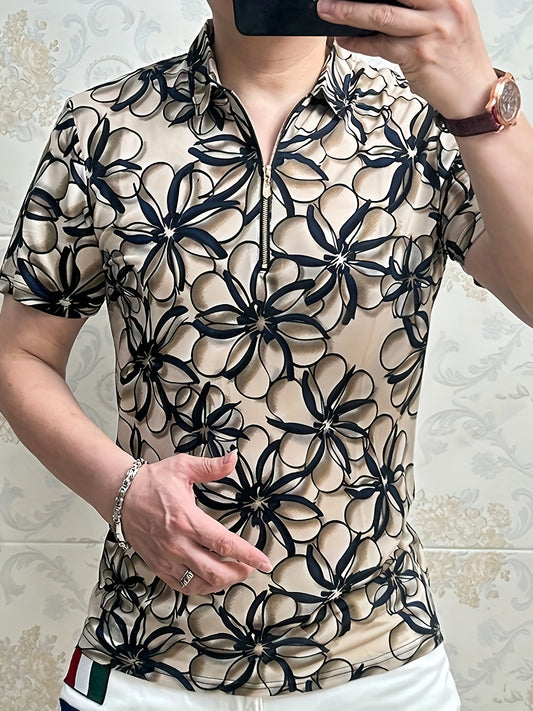 Տղամարդու թեթև, ծաղկային նախշերով կարճ թևքով շապիկ - ոճային սև, բեժ, գործնական, առօրյա վերնաշապիկ՝ կայծակաճարմանդով, սովորական չափսի՝ ամառվա համար, ամառային առօրյա հագուստի համար, ժամանակակից, առօրյա ոճ, ոճային կոճակներով դետալներ
