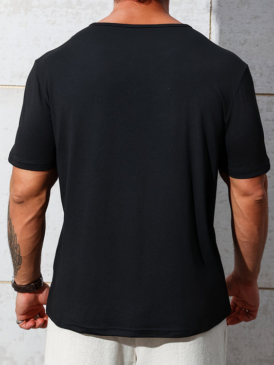 1 հատ տղամարդու գարուն-ամառ կարճ թևքերով մարզաշապիկ՝ կլոր վզով, միագույն, շնչող գործվածքով, սովորական չափսի, ամենօրյա հագուստի և թեթև մարզումների համար, գեղեցիկ ամառային վերնաշապիկներ, դասական Henley, հեշտ խնամվող նյութ, փափուկ հյուսվածքով վերնաշապիկ