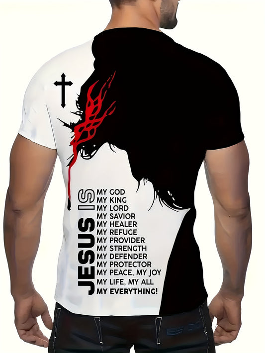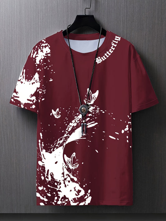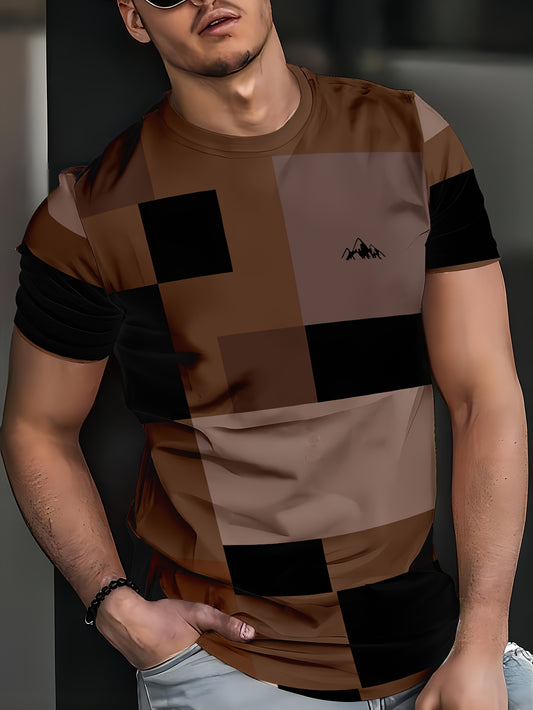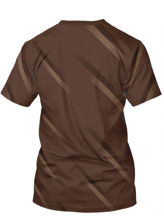 Men's 3D Print Graphic Short Sleeve T-Shirt - Casual Round Neck Regular Fit Tee with Random Unique Design, Machine Washable for Casual Attire, Modern Print Shirt, Durable Casualwear, Comfortable Fabric, Weekend Clothing, Tren