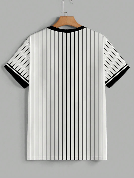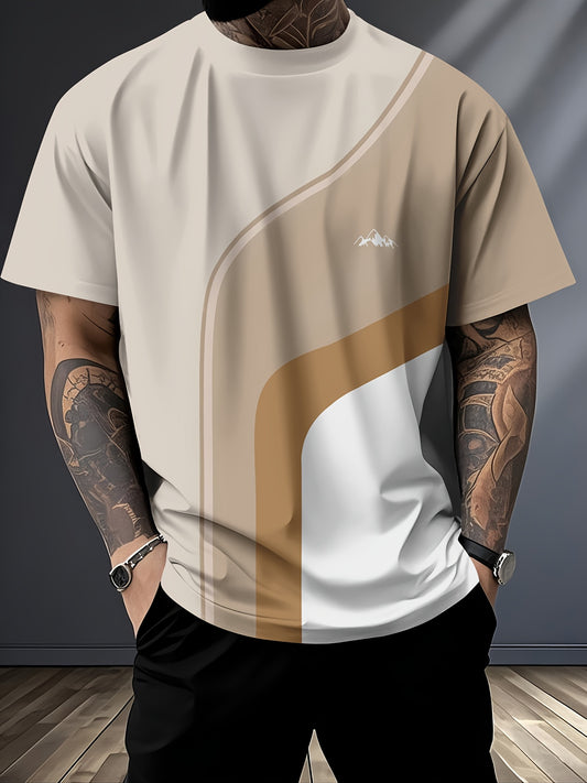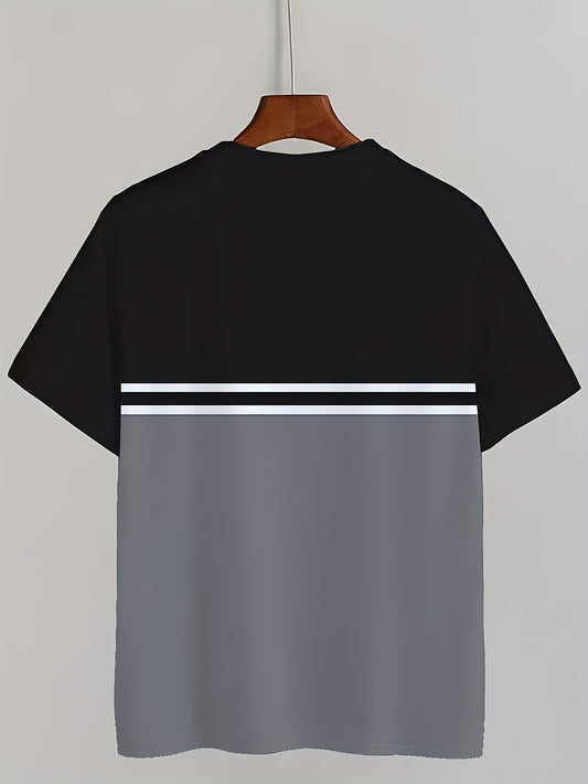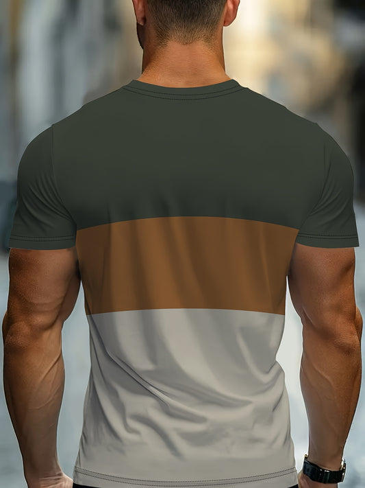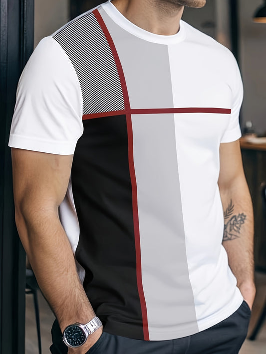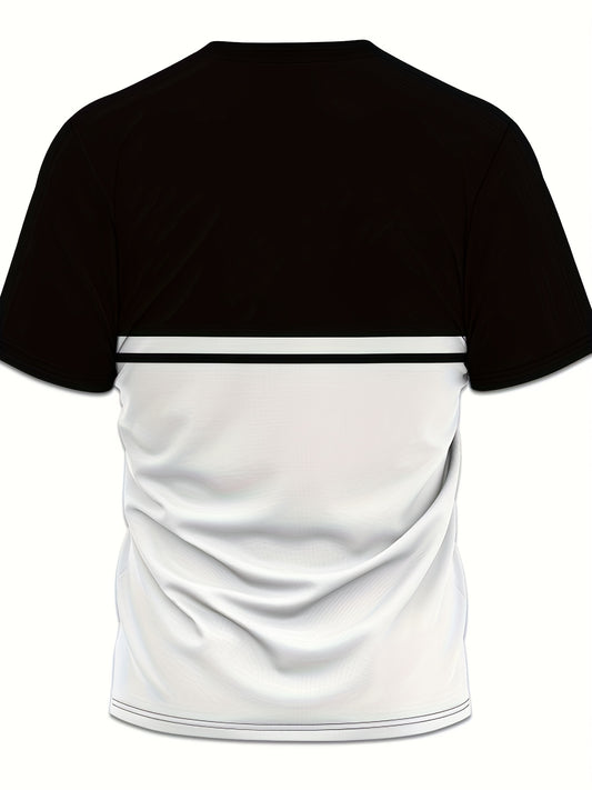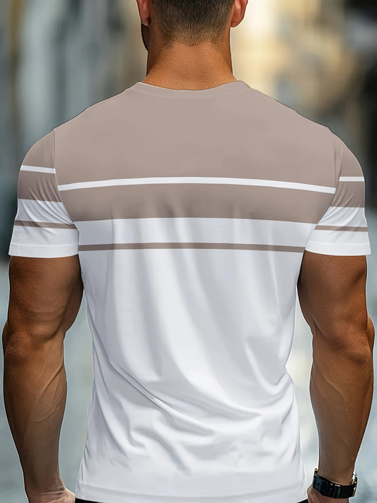 Men's 3D Digital Print Short Sleeve T-Shirt - Bold Striped Color Block Design, Breathable Round Neck, Lightweight All-Season Casual Tee, Machine Washable, Everyday Outfit, Modern Fashion, Durable Tee, Printed Shirt, Streetwea