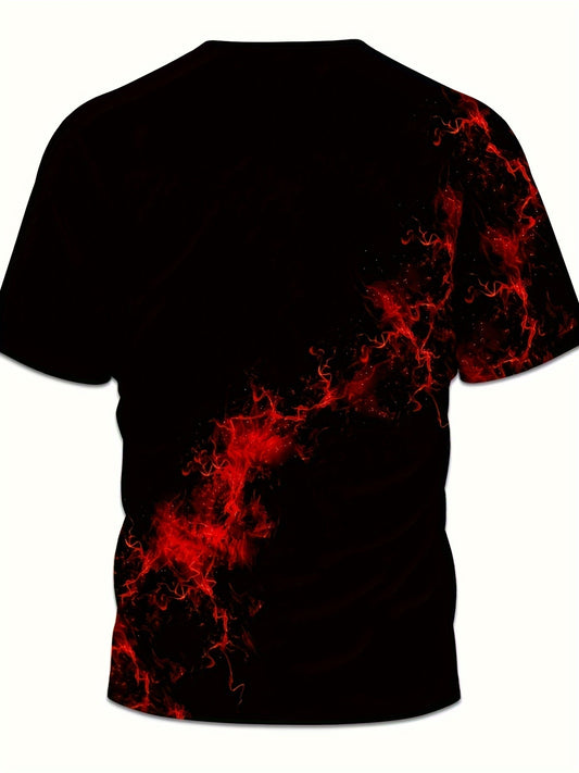 Տղամարդկանց 3D տպագրությամբ կարմիր-սև բոցերի գրաֆիկական T-շապիկ - Ամենօրյա կարճաթև, կլոր պարանոցով, ցանցավոր գործվածքով, բոլոր եղանակների համար, բացօթյա վերնաշապիկ մեծահասակների համար, ամենօրյա վառ գրաֆիկական T-շապիկ, ցանցավոր գործվածքով վերնաշապիկ
