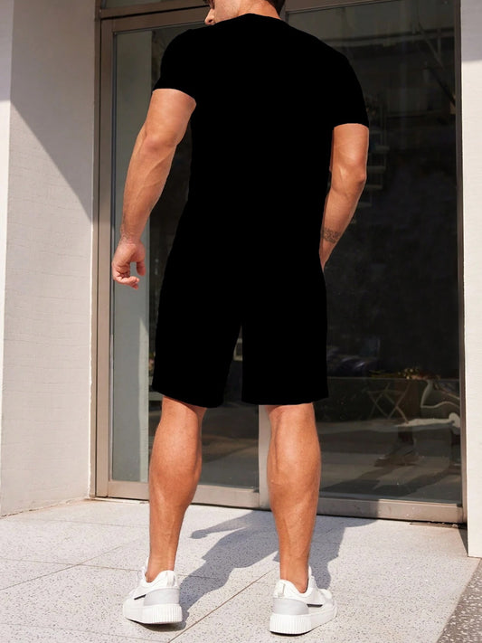Տղամարդու ամառային առօրյա սպորտային հագուստի հավաքածու, շնչող 3D տպագրությամբ կլոր վզնոցով շապիկ և շորտեր, պոլիեսթերային տրիկոտաժե գործվածք, թեթևակի ձգվող, սովորական չափսերով, բացօթյա հանգստի համար նախատեսված հագուստ