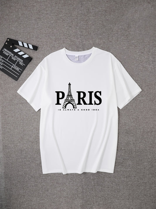 Տղամարդու ռետրո Փարիզի Էյֆելյան աշտարակի տառերով տպագիր շապիկ - շնչող պոլիեսթերային կարճ թևքերով կլոր վզնոցով շապիկ, լվացքի մեքենայով լվացվող ամառային վերնաշապիկ՝ ամենօրյա հագուստի համար, հանգստի հագուստ, հարմարավետ չափսի շապիկ