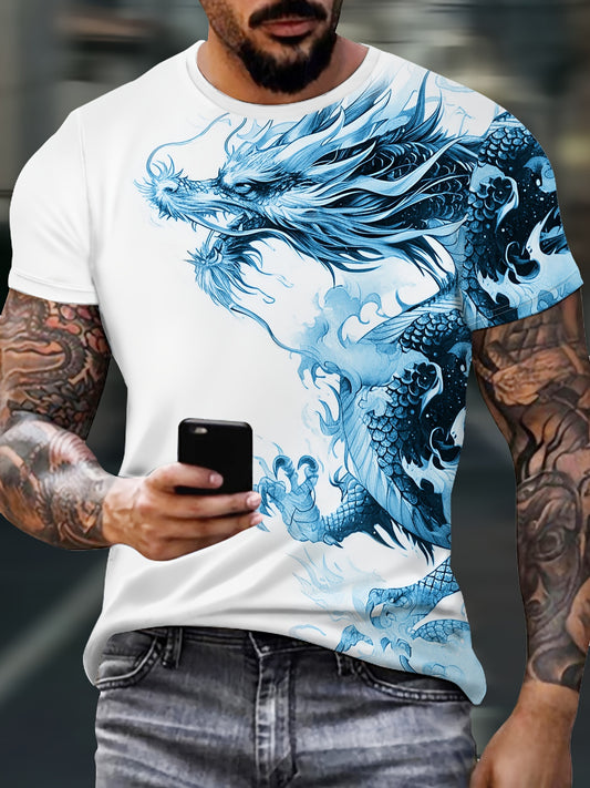 Տղամարդու Bold Dragon գրաֆիկական շապիկ՝ կարճ թևքերով, կլոր վզնոցով, պոլիեսթերի խառնուրդով - իդեալական է ամառային զբոսանքների և առօրյա հագուստի համար