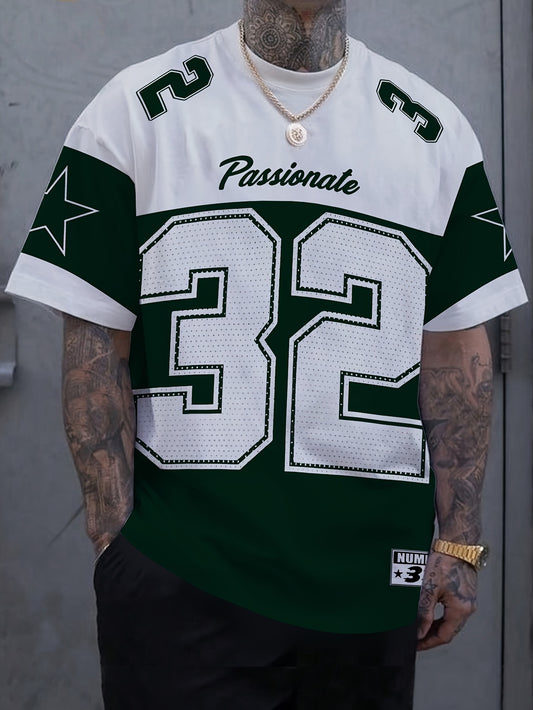 Տղամարդու ամառային, առօրյա, կլոր վզնոցով, կարճ թևքերով, 32 համարի տպագրությամբ, սպիտակ-սև կոնտրաստային, սովորական չափսի, առօրյա հագուստի համար նախատեսված վերնաշապիկ, հանգստի հագուստի կոնտրաստային գույների վերնաշապիկ, հարմարավետ չափսի։