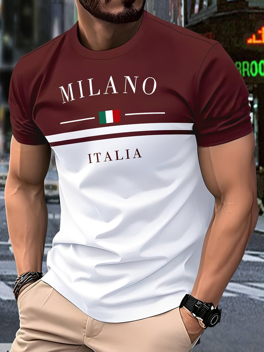 Տղամարդու Միլան Իտալիա գրաֆիկական մարզաշապիկ, սև-սպիտակ գունային բլոկներով դիզայնով և իտալական դրոշի տպագրությամբ, ամառային կարճ թևքերով մարզաշապիկ, իդեալական է բացօթյա և սպորտային մարզումների համար, իտալական մարզաշապիկ, դիմացկուն գործվածքից