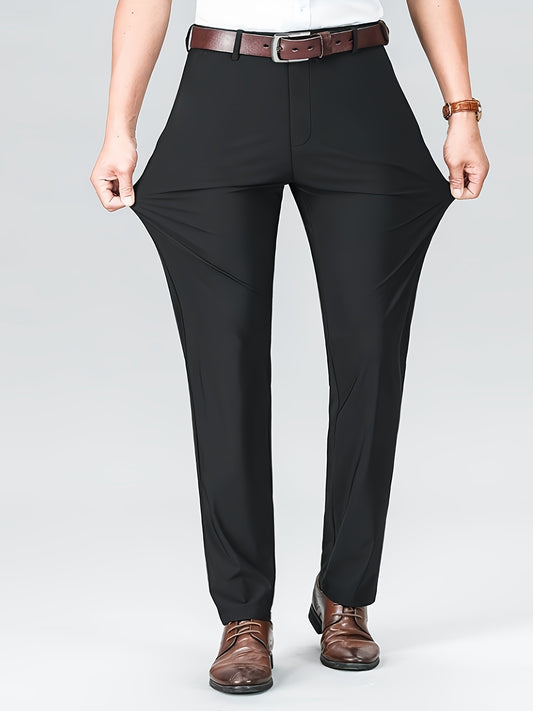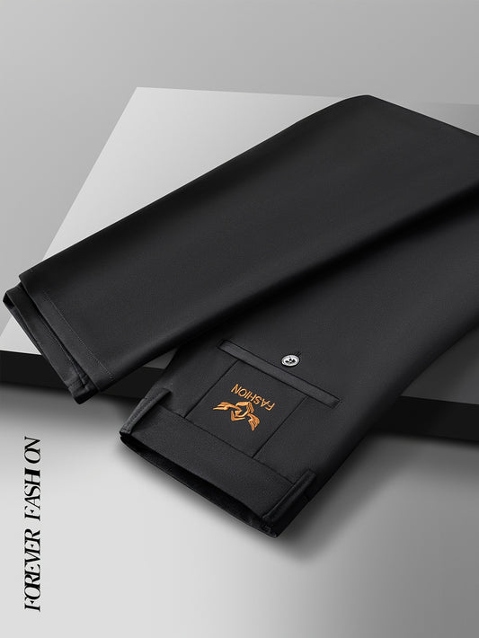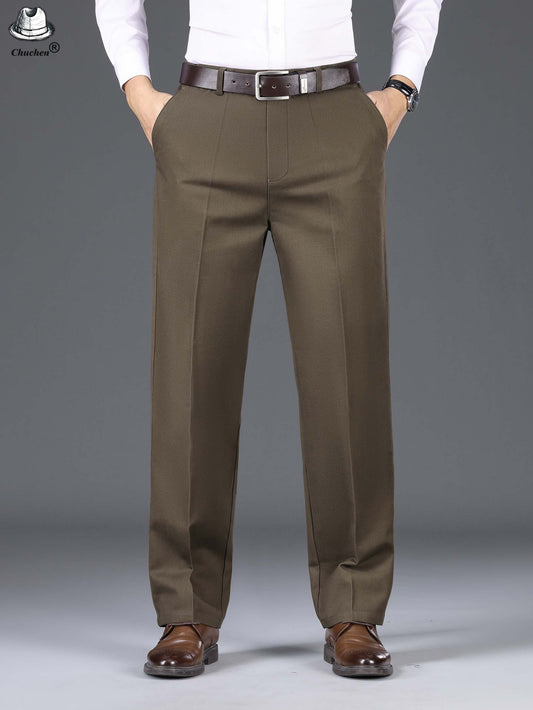 1 հատ Classic Fit տղամարդկանց զգեստի շալվար - 100% բամբակ, միաձույլ գույն, ոչ ձգվող, սովորական երկարություն, աշուն/ձմեռ - բիզնես պատահական ոճ