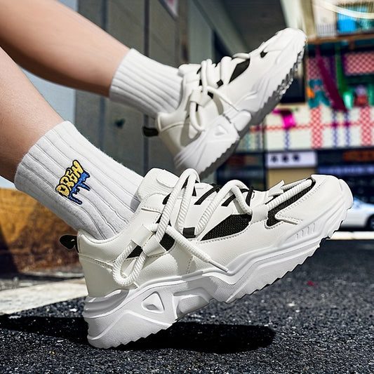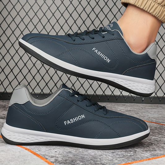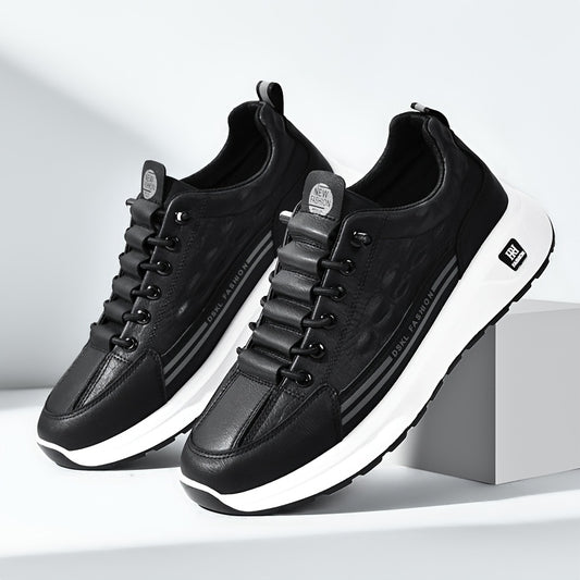 Men's Casual Skate Sneakers - Low-Top Breathable PU & Fabric Upper, Durable PVC Sole, Black/White Colorway for All-Season Urban Streetwear & Light Sports, Everyday Footwear | Sleek Sneaker Design | Fabric Lined Interior, Skat