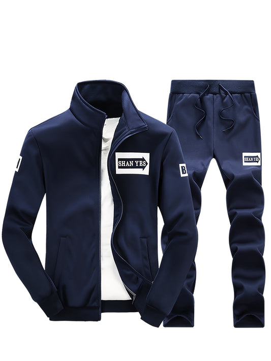 Տղամարդու առօրյա տպագիր սվիտերի և մարզաշապիկի հավաքածու՝ պոլիեսթերից, կանգնած օձիքով, կայծակաճարմանդով բաճկոն՝ գարնանային/աշնանային համար