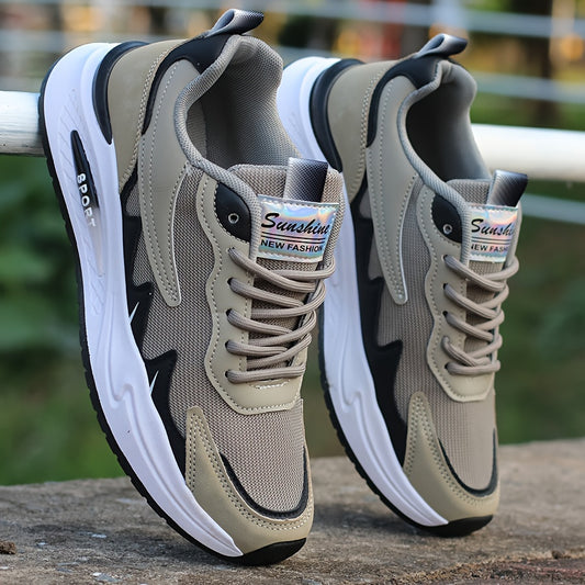 Men'S Breathable Athletic Sneakers - Lightweight, Soft, Non-Slip Running Shoes with EVA Sole for Sports, Travel Casual Wear - White Brown Two-Tone Design, Lace-Up Low Tops, All-Season Comfort, Sports Footwear, Sleek Sport