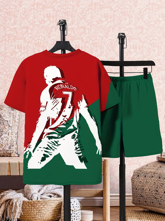 Նորաձև ֆուտբոլային 7 համարի կերպարի 3D տպագրությամբ տպագիր վերնաշապիկի և շորտերի հավաքածու աղջիկների և տղաների համար, մանկական կարճ թևքերով հանդերձանք, իդեալական է բացօթյա օգտագործման համար