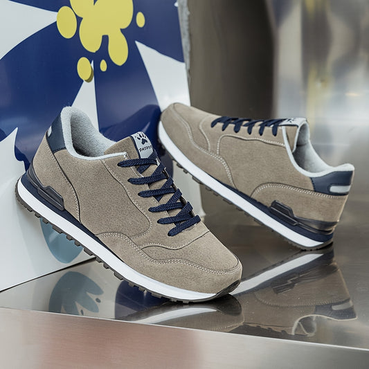 Men's Non-Slip Sneakers - All-Season Lace-Up Sneakers with Cushioned PU Sole, Beige/Blue Accent Low-Top Design for Gym, Hiking, Everyday - Non-Marking Tread, Durable Easy-Clean Casual Shoes, Hiking Sneakers, Gym Footwear, R