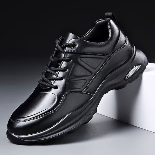 Men's Sneakers - Lightweight Cushioned Platform Sneakers with Non-Slip PVC Outsole, Breathable Low-Top design for Gym, Running, Casual - All-Season Everyday Formal Shoes - Black, Sleek Shoe Design, Fabric Lined Interior