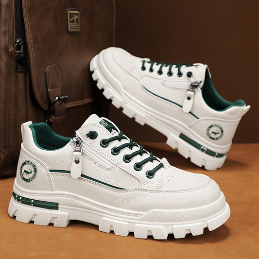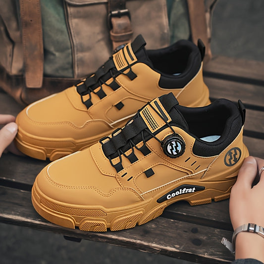 Men's Solid Color Skate Sneakers - Adjustable Rotating Buckle Straps, Slip-Resistant PVC Sole Durable PU Upper, Low-Top Lace-Up Design for Hiking, Walking, Daily Wear - All-Season Casual Streetwear Shoes, Skate Shoes