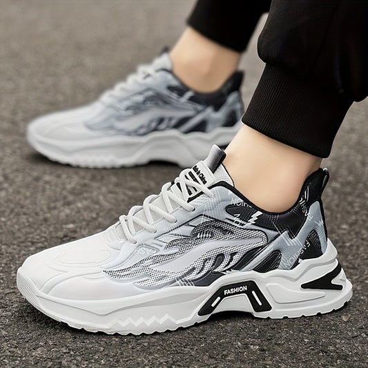 Տղամարդկանց շնչող առօրյա սպորտային կոշիկներ - Նորաձև ցածր, կապած սպորտային կոշիկներ՝ փափուկ ռետինե ներբանով, սպիտակ-սև դիզայնով, գարուն/ամառ, իդեալական վազքի և առօրյա հագուստի համար, բազմակողմանի վազքի կոշիկներ Sports Aesthetic Shoes Co.
