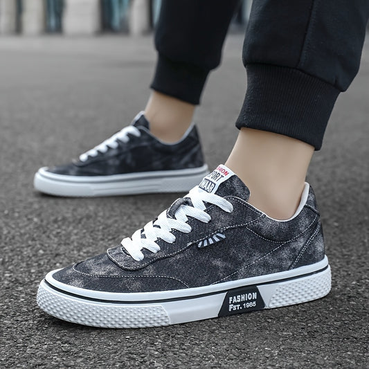 Men's All-Season Sneakers - Lace-Up Low-Top Shoes with Non-Slip PVC Sole, Breathable Fabric Upper - Cushioned Insole for Gym, Running, Everyday - Classic Round Toe - All-Season Casual Shoes for Men, Gym Footwear, Modern Canva