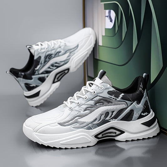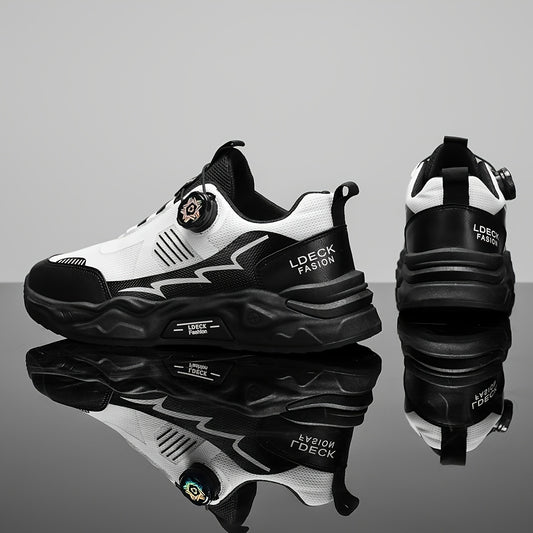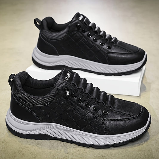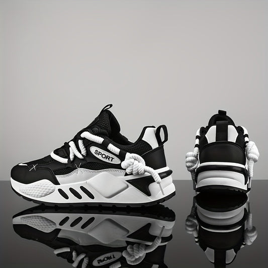 Տղամարդու ոճային սև ու սպիտակ սպորտային կոշիկների 1 զույգ՝ կապիչներով, կլոր քթով, ռետինե ներբանով, պոլիուրեթանային վերին մասով, իդեալական է առօրյա և գործնական հագուստի համար, ամենօրյա սպորտային կոշիկներ | Սպորտային առօրյա կոշիկներ | Երկարակյաց կառուցվածք