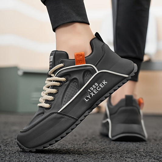 Men'S Lightweight Skateboard Sneakers, Retro Lace-Up Casual Sports Shoes, Comfortable Non-Slip Durable PU Upper Fabric Insole, Solid Color Design, Low Top Round Toe for Outdoor Activities, Casual Sports Shoes|Retro Laceup Des