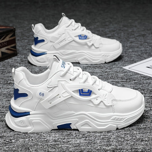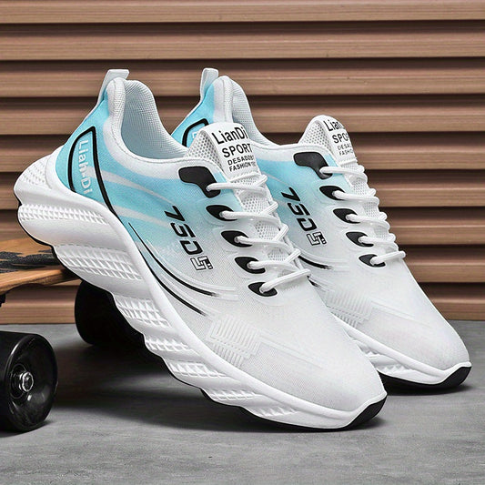Men's Lightweight Sneakers - Non-Slip PVC Sole, Cushioned EVA Insole - White/Blue Accent Low-Top Sneakers for Gym, Running, Everyday - All-Season Lace-Up Athletic Footwear - Model HX-3, Sports Activities, Sporty Design, Secur