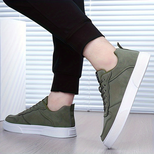 1 զույգ Տղամարդկանց նորաձև սքեյթբորդ մարզակոշիկներ - ցածր վերևից ժանյակավոր պատահական սպորտային կոշիկներ, միաձույլ գույնի արհեստական վերնամաս, հարմարավետ գործվածքից աստառ, երկարակյաց PVC ներբան, բացօթյա բոլոր սեզոնային կոշիկներ