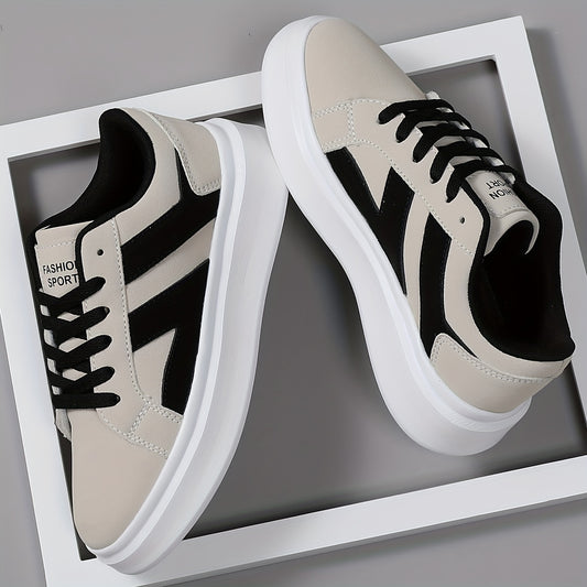 Men's Casual Skate Sneakers - Low-Top Breathable PU & Fabric Upper, Durable PVC Sole, Black/White Colorway for All-Season Urban Streetwear & Light Sports, Everyday Footwear | Sleek Sneaker Design | Fabric Lined Interior, Skat