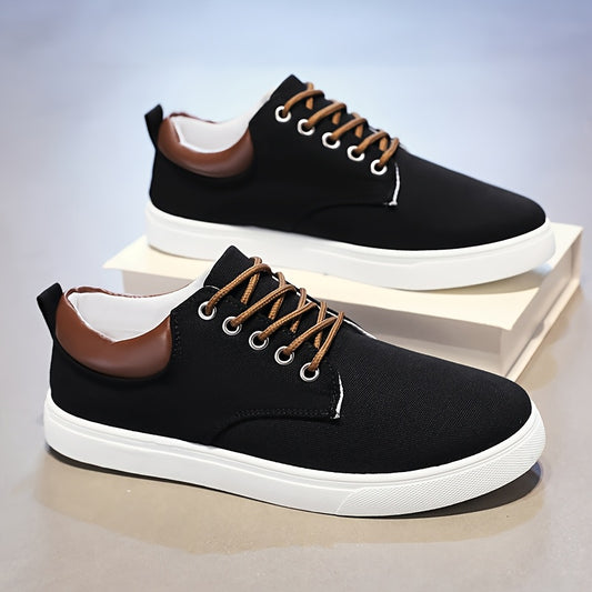 Տղամարդկանց 1 զույգ դասական շնչառական կտավից սպորտային կոշիկներ, հարմարավետ չսահող, երկարակյաց քայլելու կոշիկներ, սովորական լոֆերներ, կլոր ծայր, ցածր վերնամասով, ժանյակավոր կոշիկներ, միաձույլ գույնի, բոլոր սեզոնային սպորտային կոշիկներ