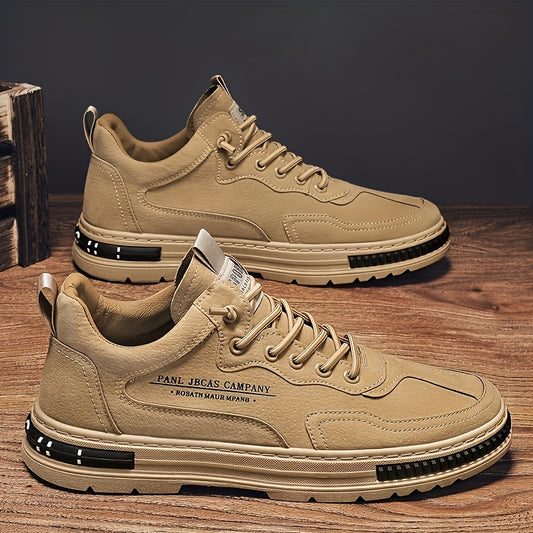 Տղամարդկանց սքեյթ կոշիկ՝ բազմակողմանի բեժ ոճային սպորտային կոշիկներ, դիմացկուն չսահող PU ներբան, ժանյակավոր վերնաշապիկ՝ ամենօրյա և բացօթյա գործունեության համար