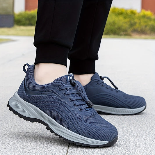 Տղամարդկանց թրենդային պինդ հյուսված տրիկոտաժե շնչառական վազքի կոշիկներ, հարմարավետ չսահող ժանյակներով երկարակյաց սպորտային կոշիկներ տղամարդկանց բացօթյա գործունեության համար