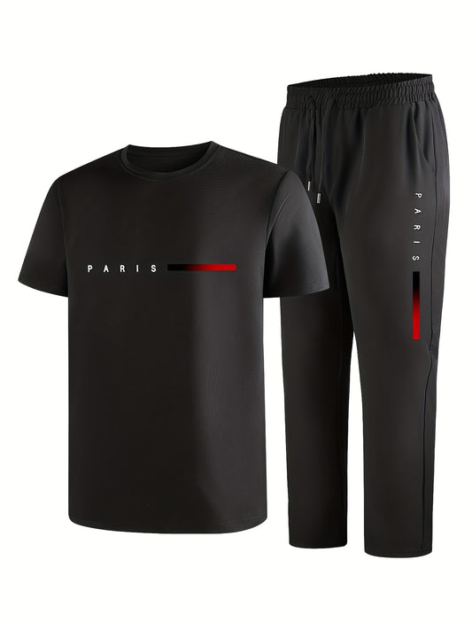 Տղամարդու սպորտային երկկտոր կոմպլեկտ կարճ թևքերով վերնաշապիկով, ուղիղ ոտքերով տաբատ՝ Փարիզյան նախշերով, նորաձև և նորաձև, իդեալական է ամռան, երեկույթների, առօրյա զբոսանքների և առօրյա հագուստի համար, առօրյա հագուստ | Կարճ թևքերով վերնաշապիկ | Նախշերով տաբատ