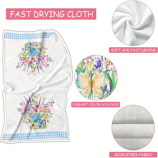 4-փաթեթ Vintage ծաղկային և թիթեռներով ասեղնագործված միկրոֆիբրե սրբիչներ, գերներծծող տրիկոտաժե գործվածքից թեյի սրբիչներ խոհանոցի համար, խոհարարություն, թխում, տան ձևավորում, 45x70 սմ