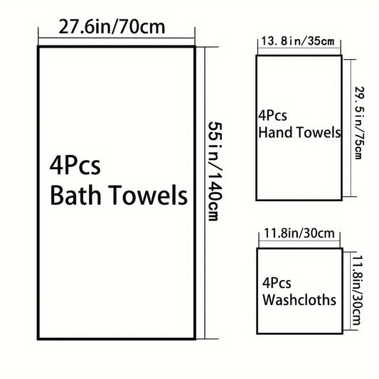 4 հատ շքեղ լոգանքի սրբիչների հավաքածու՝ գերփափուկ, գերներծծող, արագ չորացող սրբիչ, որը բերում է սպա-նման փորձ՝ հարմար է ֆիթնեսի, սպա, սպորտի և լոգարանի համար անհրաժեշտ պարագաների համար: