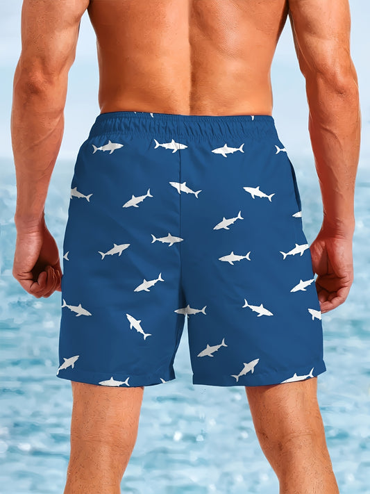 Տղամարդկանց լողափնյա շորտեր, որոնք ներկայացնում են մի խումբ պաշտելի փոքրիկ շնաձկներ՝ բարձր հստակությամբ 3D տպագրությամբ, արագ չորացող լողազգեստներ՝ պարանով, կատարյալ ամառային բացօթյա գործունեության, ծովափնյա հանգստի, լողի և սերֆինգի համար: