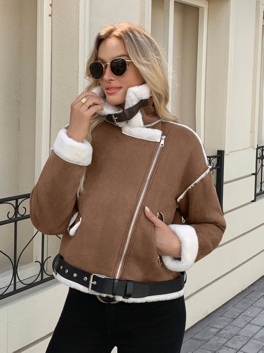 Կանացի ձմեռային բաճկոն՝ հաստ վերարկու՝ սպիտակ մորթե օձիքով և թևկապով - Էլեգանտ շագանակագույն վերնազգեստ, գոտիով գոտկատեղ (չձգվող)՝ աշուն/ձմեռ, լվացքի մեքենայով լվացվող՝ ցուրտ եղանակի համար (ոչ) - վերարկու զգեստների/կիսաշրջազգեստների համար