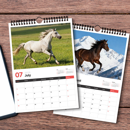 1pc 2026 Horse-Themed Wall Calendar with Hooks - Thick Paper Monthly Planner, Vibrant Horse & Landscape Art, Includes Holiday Notes, Ideal for Home & Office Decor, Perfect Gift for Horse Lovers, Office Decoration | Horse Them