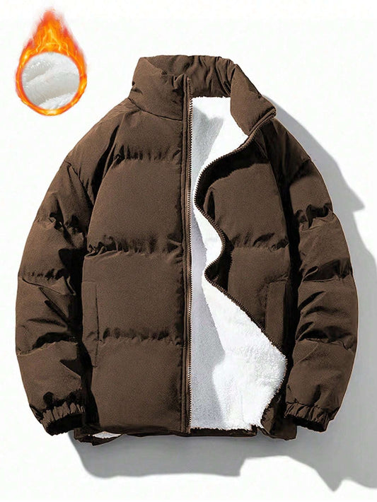 Yilong OBM Men's 2025 Fleece-Lined Winter Coat - Stand Collar Padded Insulation, Machine Washable Polyester, Solid Color Casual Jacket with Zipper Closure for Cold Weather, Winter Jacket, Outdoor Clothing, Minimalist Design,