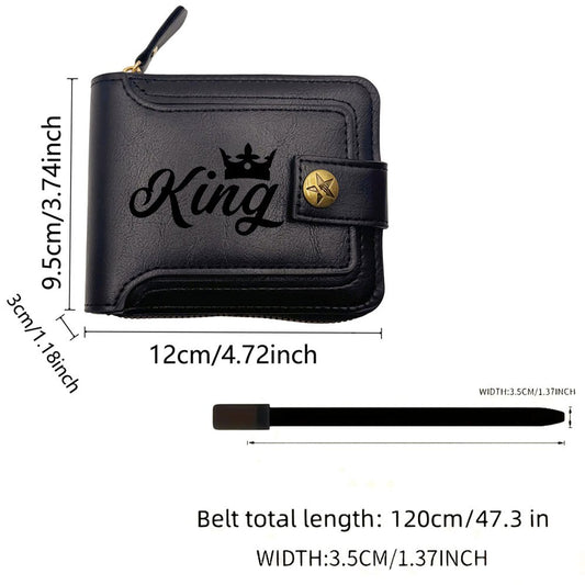 2pcs Men's Belt & Wallet Combo Matching Set - King Print Design, Business Professional Belt & Wallet with Cash Pocket - Gift for Dad, Husband (Valentine's Day, Graduation) - Stylish Male Accessory Suitable for Outfit Essentia