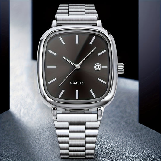 LUCKYFOX չոր մարտկոց, մեկ տուփ, պողպատե ժապավեն, փոքր քառակուսի օրացույց, բարձրակարգ վինտաժ, պարզ, տղամարդկանց և կանանց համար, հարմար է առօրյա կյանքի, գործնական գործունեության, փառատոների, ծննդյան նվերների, Սուրբ Վալենտինի օրվա նվերների համար
