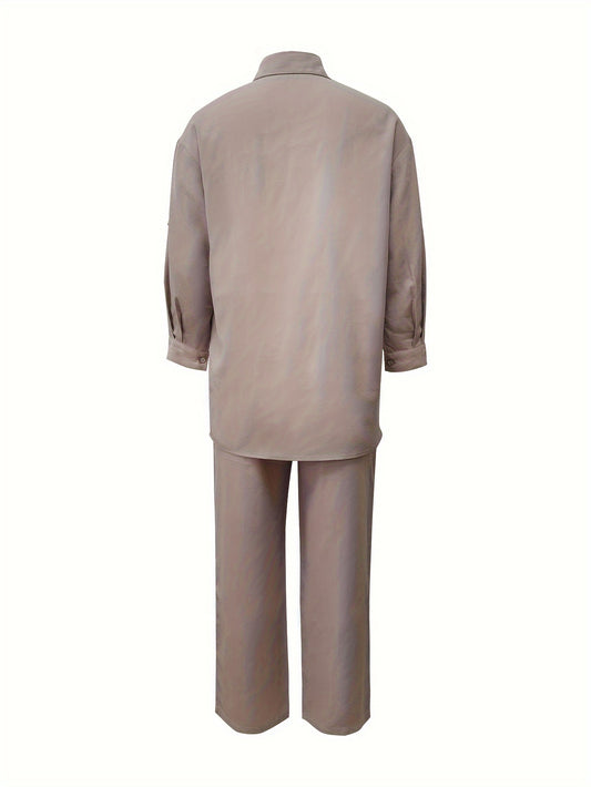Vintage միաձույլ շալվարների հավաքածու, միայնակ գրպանով 3/4 թեւով վերնաշապիկ և ուղիղ ոտքերի ազատ պարզ տաբատ, կանացի հագուստ