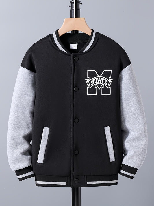 Տղաների բեյսբոլի օձիքով երկարաթև տառ և համարանիշ Գրաֆիկական գունավոր բլոկի կաթիլ ուսերի բաճկոն առանց գլխարկի